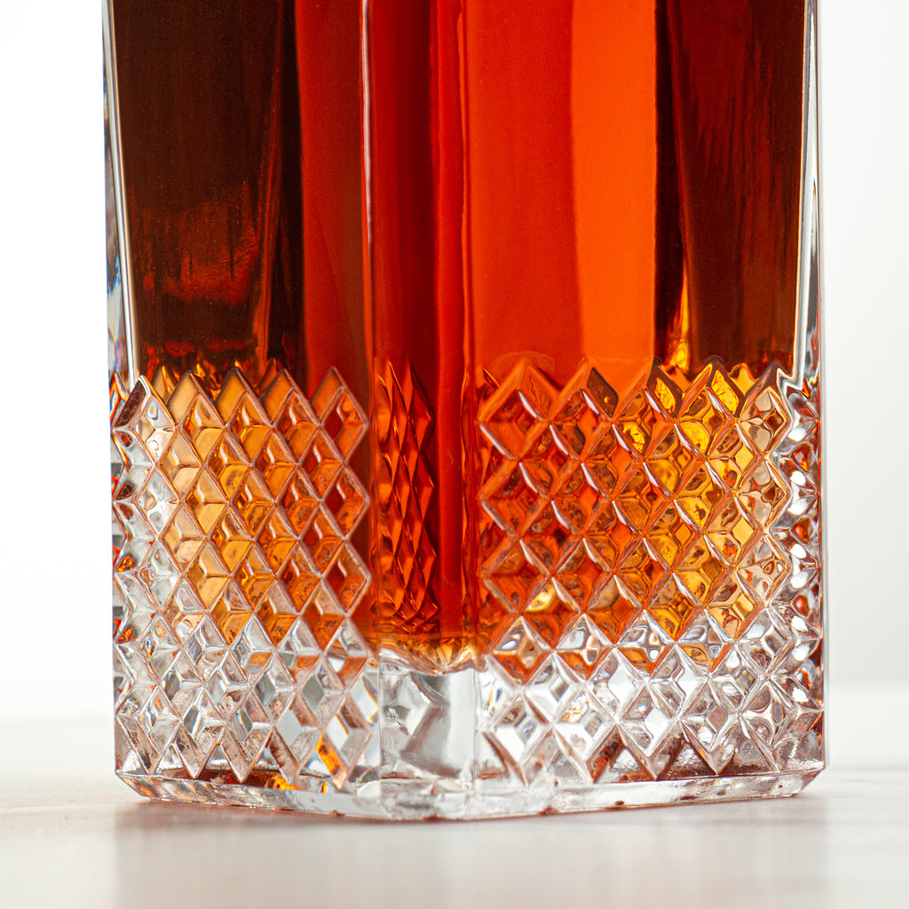 Decanter Brilliance: The star of the show, our Iceberg Decanter, boasts a generous capacity and a unique shape that allows your favorite spirits to breathe and develop their full flavor profile. Its crystal-clear clarity showcases the rich color and texture of your liquor, enhancing both the visual and aromatic aspects of your drinking experience.