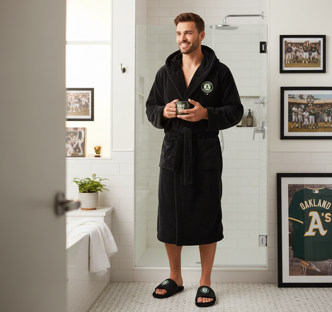 Wake up after a walk-off, slide into the Phantom Blacks, throw on the robe, and you’re instantly ready to re-live the 1989 sweep or just live like the A’s still own October.