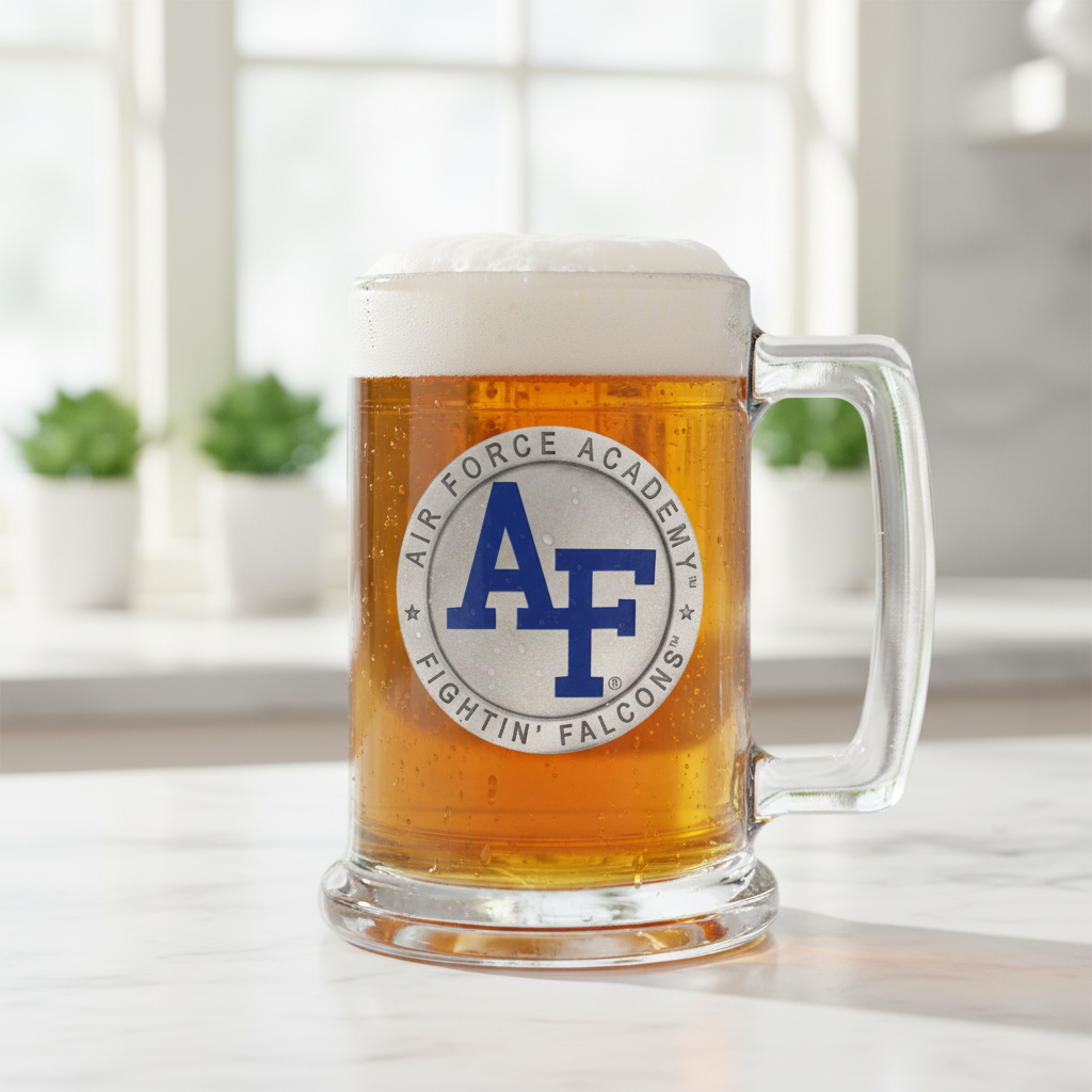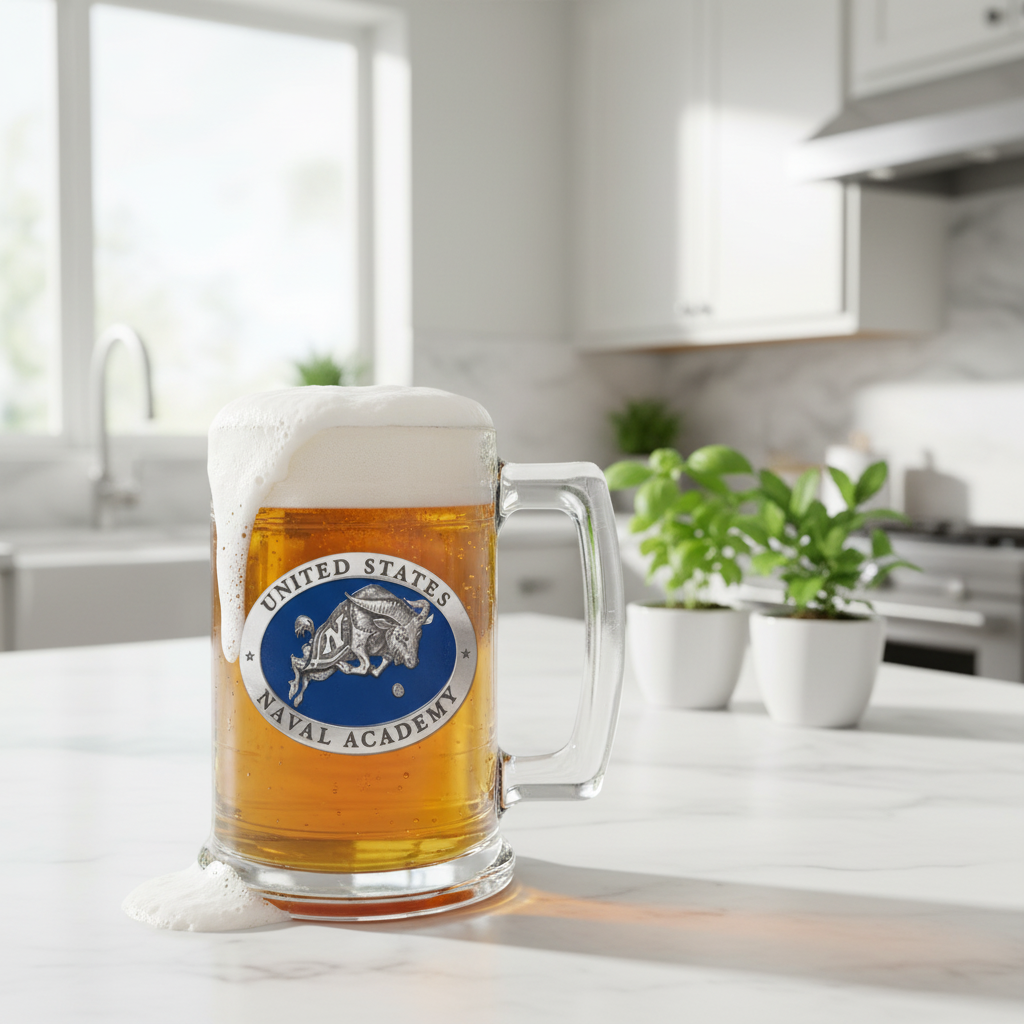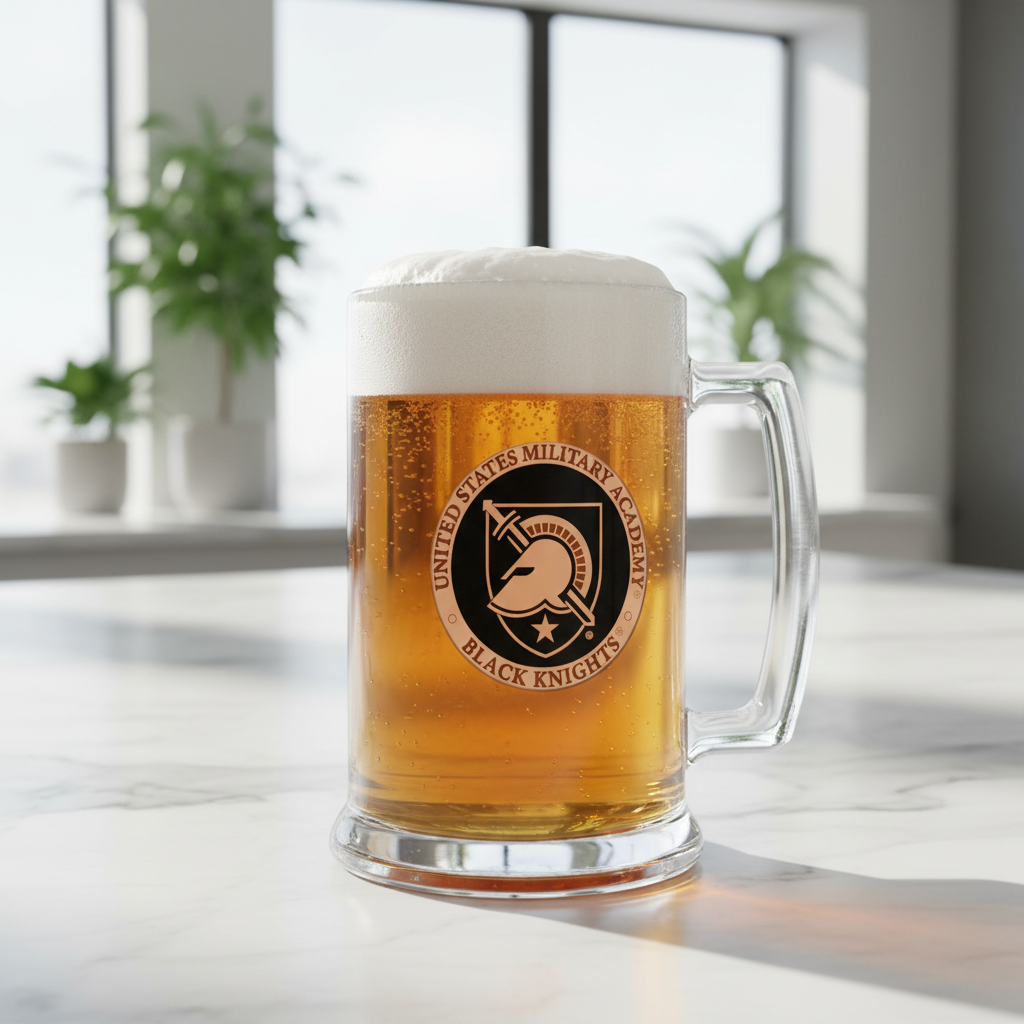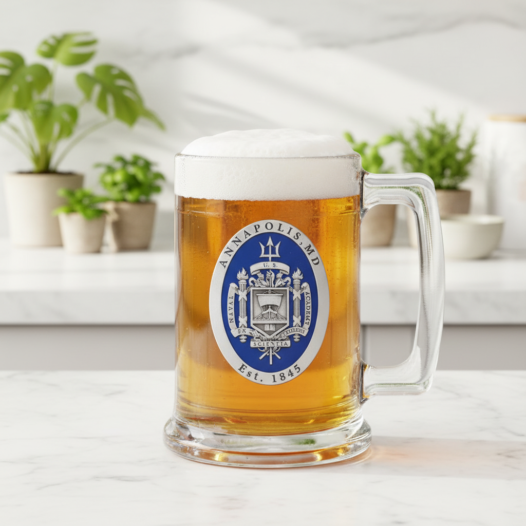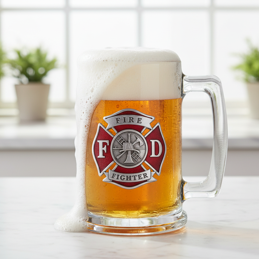 Firefighter Heritage Beer Stein - 15oz Glass Mug with Fine Pewter Emblem