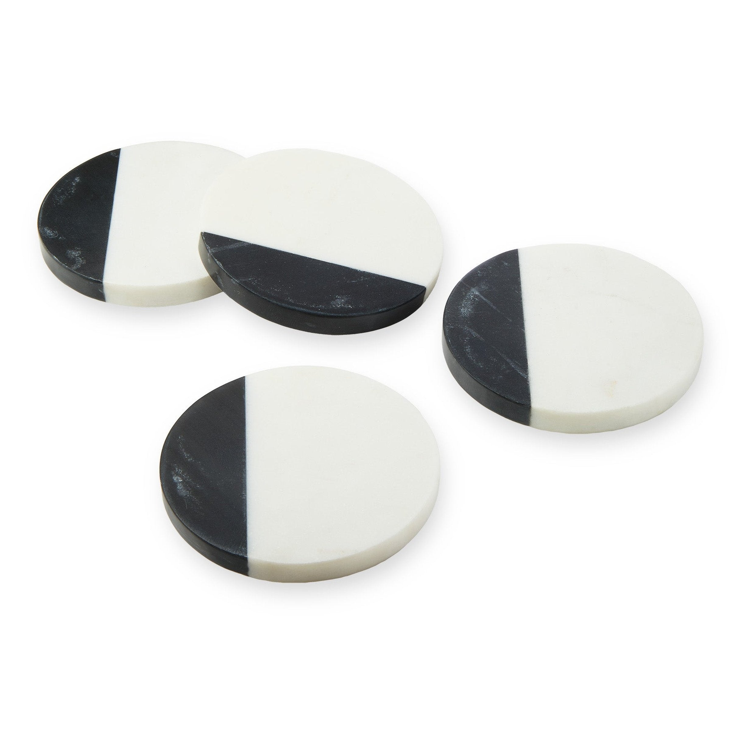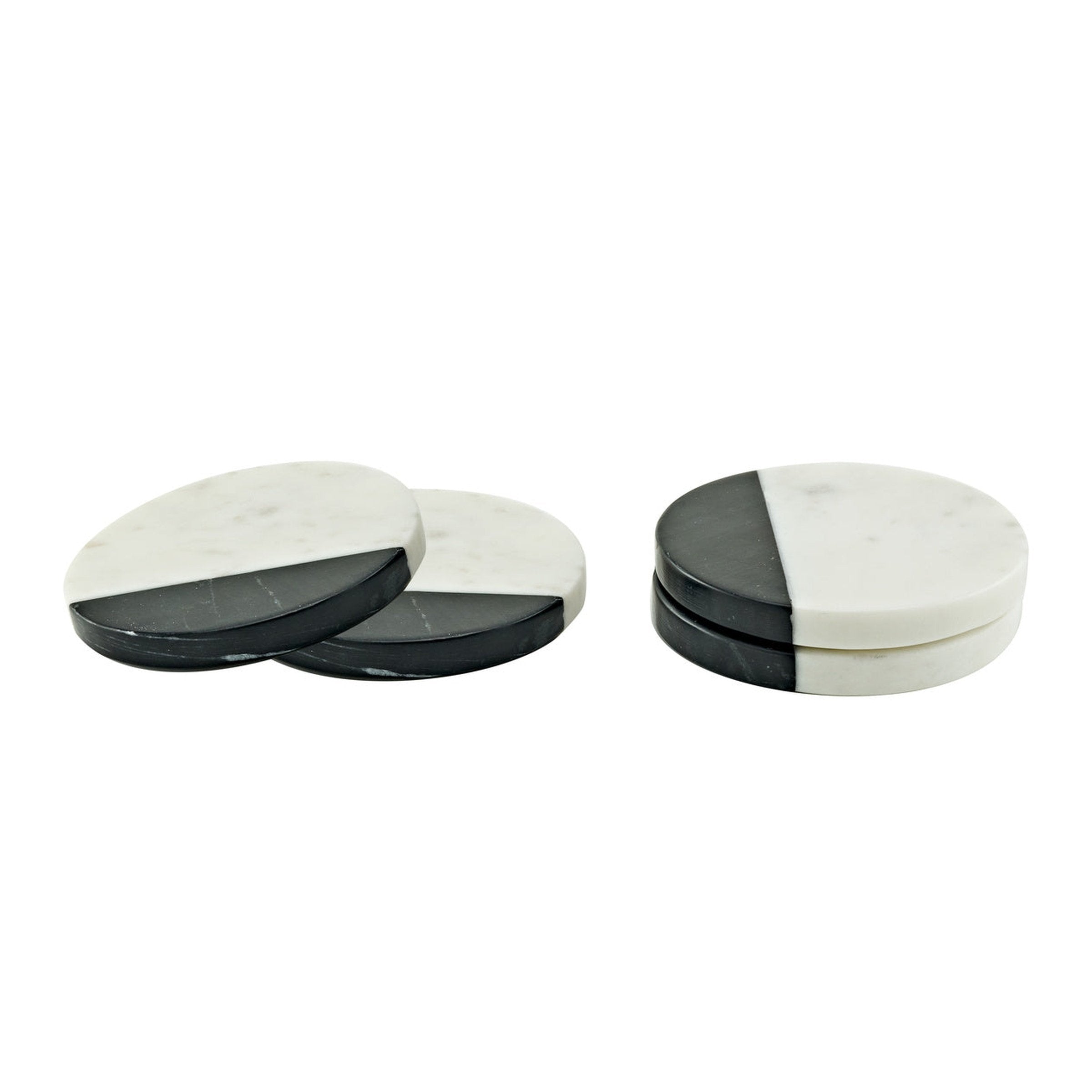 Elevate your table setting with this glamorous white and black marble coaster set. Handcrafted with attention to detail, each piece exudes luxury and sophistication, adding an exclusive touch of refinement to your décor.