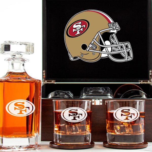 Customized Engraved Dark Brown Wood Box Decanter Set With Rocks Glasses - NFL San Francisco 49ers
