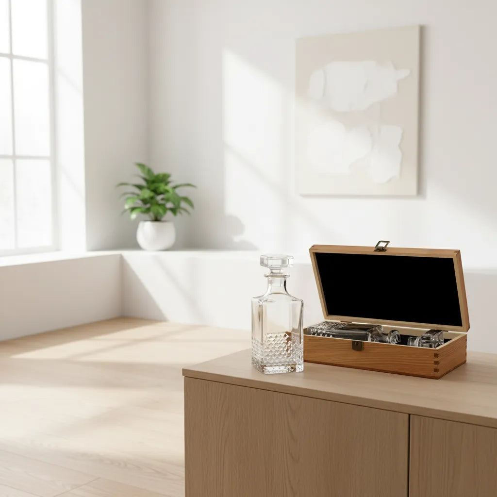 Versatile and Memorable: This set is not just for spirits; it's a versatile addition to your home bar. Whether you're hosting a sophisticated evening with friends or unwinding after a long day, the Iceberg Decanter in Rustic Wood Box adds a touch of elegance and sophistication to every sip.