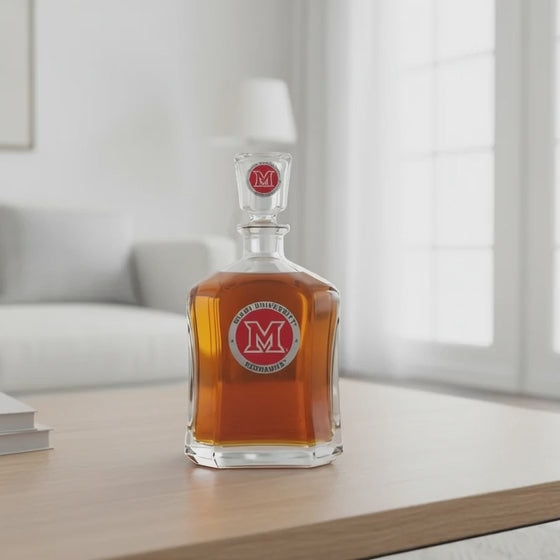 Miami University Capitol Decanter 24oz with Pewter RedHawks Logo | Official MU Barware Gift