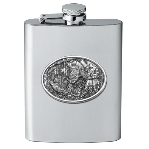 Bobwhite Quail 8oz Stainless Steel Flask - Fine Pewter Upland Bird Casting - Made in USA