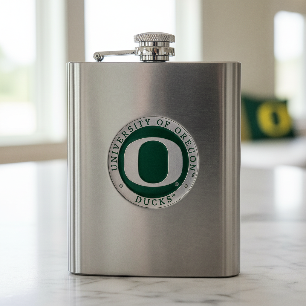 Celebrate your Duck pride with this sleek and durable University of Oregon flask - a stylish tribute to one of the most spirited collegiate communities in the nation. Whether you're tailgating at Autzen Stadium, commemorating a special occasion, or simply enjoying a quiet moment, this flask is a refined way to honor your connection to Oregon.