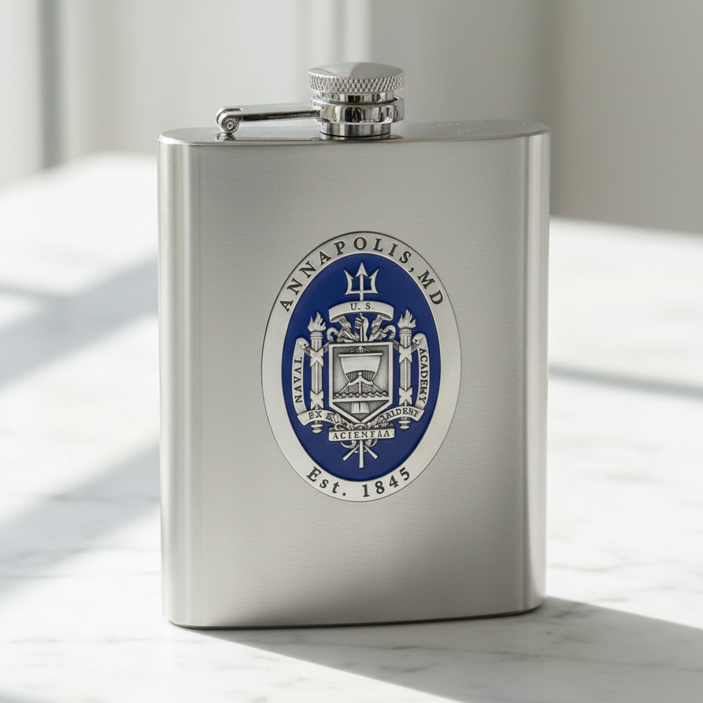 United States Naval Academy Crest Heritage Pewter Flask - 8oz