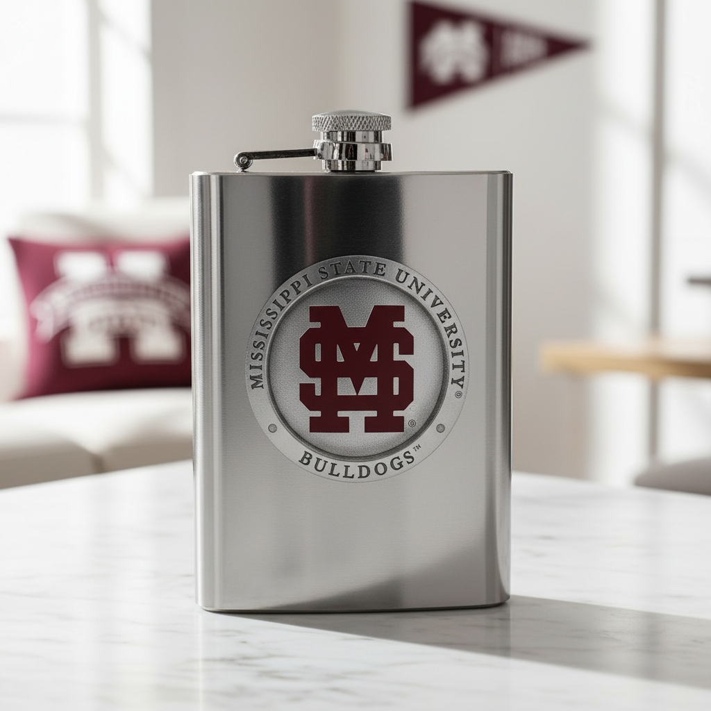 Mississippi State University Baseball Logo Heritage Pewter Flask - 8oz