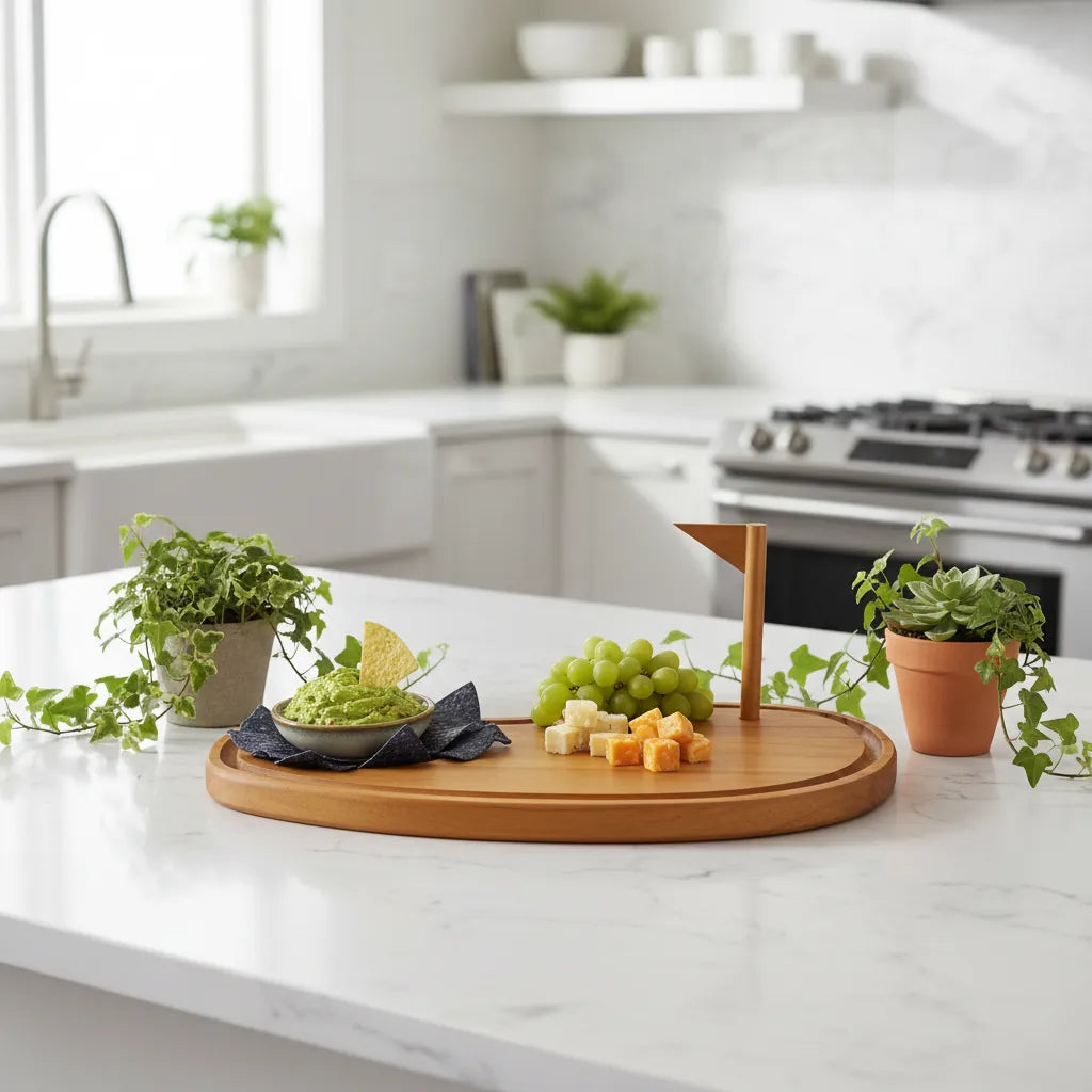 Bring the putting green to your tabletop with our Golf Course Wood Board, a perfect addition for golf enthusiasts and event hosts alike. This board, designed to resemble a putting green, features a natural pine wood finish with a recessed sand trap at the top and a removable flag pole, combining functionality with thematic flair. The unique shape includes a catch-all moat around the edge, ideal for neatly serving appetizers at any golf-themed event. Measuring 15 inches in length and 8.25 inches in width, it's designed for durability and style.