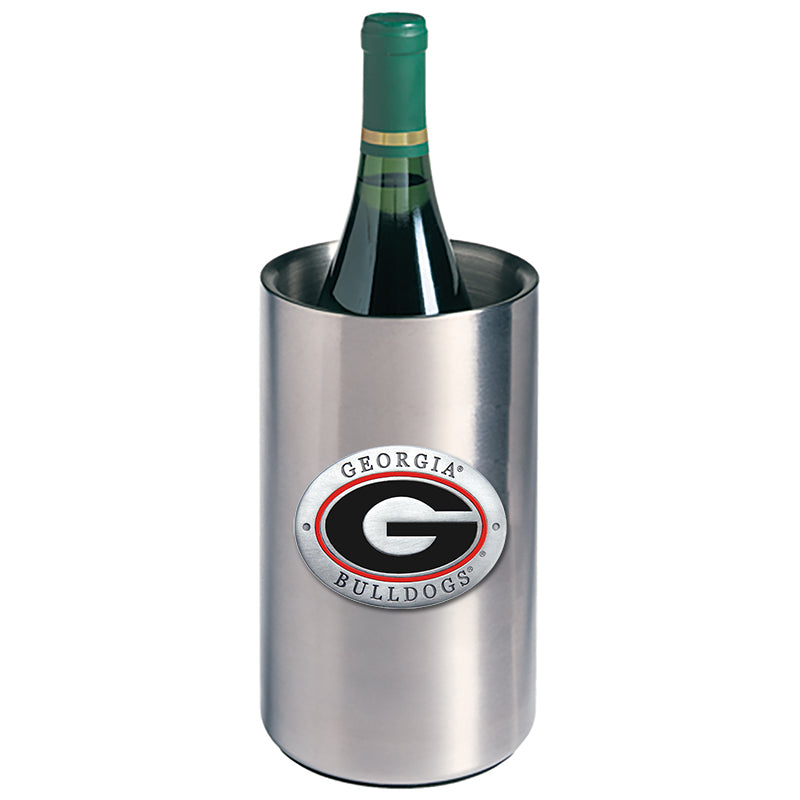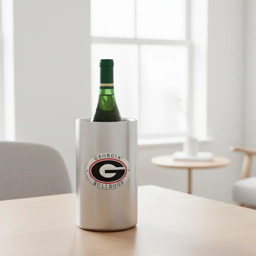 University of Georgia Wine Chiller - Double-Wall Insulated Stainless Steel with Pewter “G” Logo Medallion