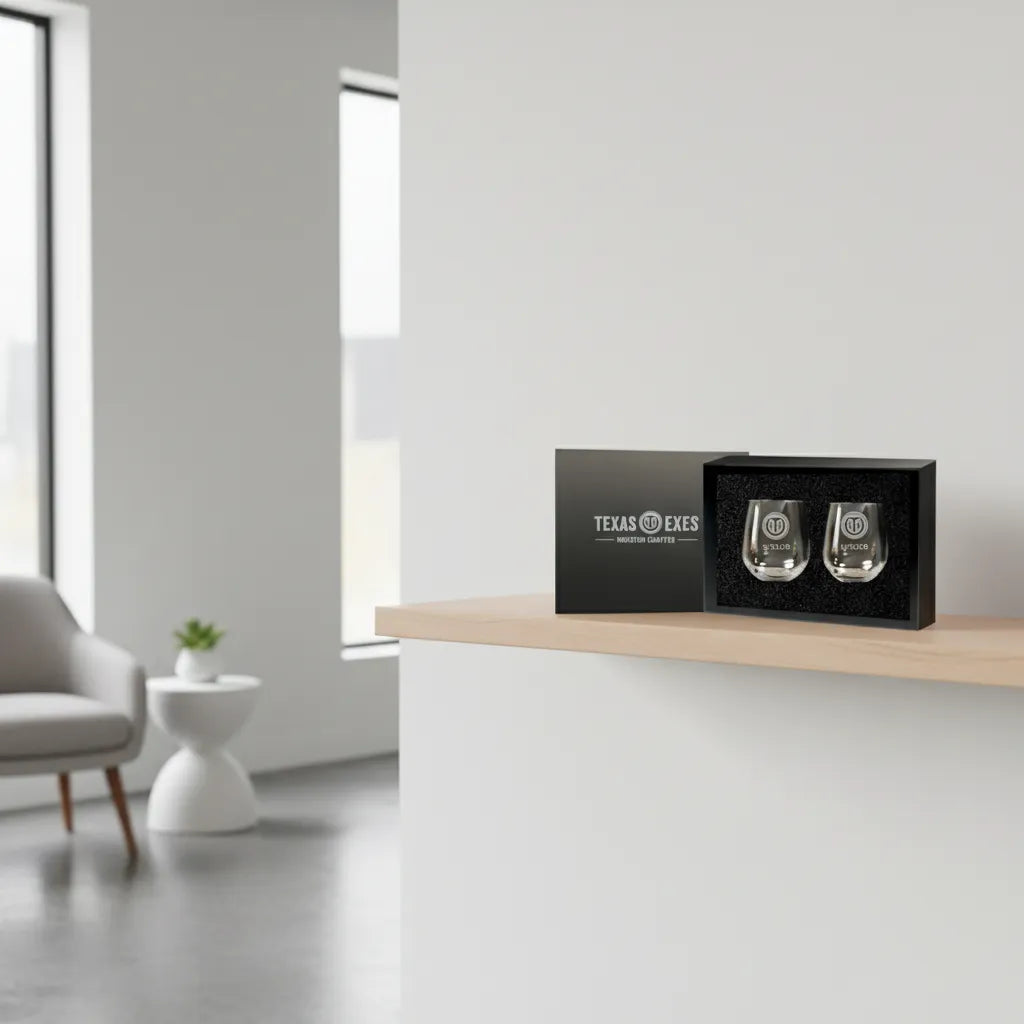 Celebrate your Texas Exes Longhorn pride in style with this elegant stemless wine glass set, custom-crafted for Texas Exes. Each 15oz glass is laser-engraved with your personalized touch whether it's a name, graduation year, or a heartfelt message making it the perfect gift for alumni, fans, or anyone who bleeds burnt orange.