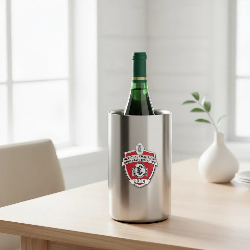 2014 Ohio State Football National Championship Wine Chiller - Double-Wall Insulated Stainless Steel with Pewter Commemorative Logo Medallion