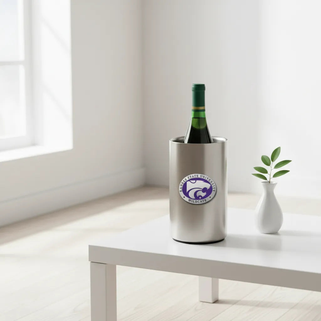 Kansas State University Wine Chiller - Double-Wall Insulated Stainless Steel with Pewter “Powercat” Logo Medallion