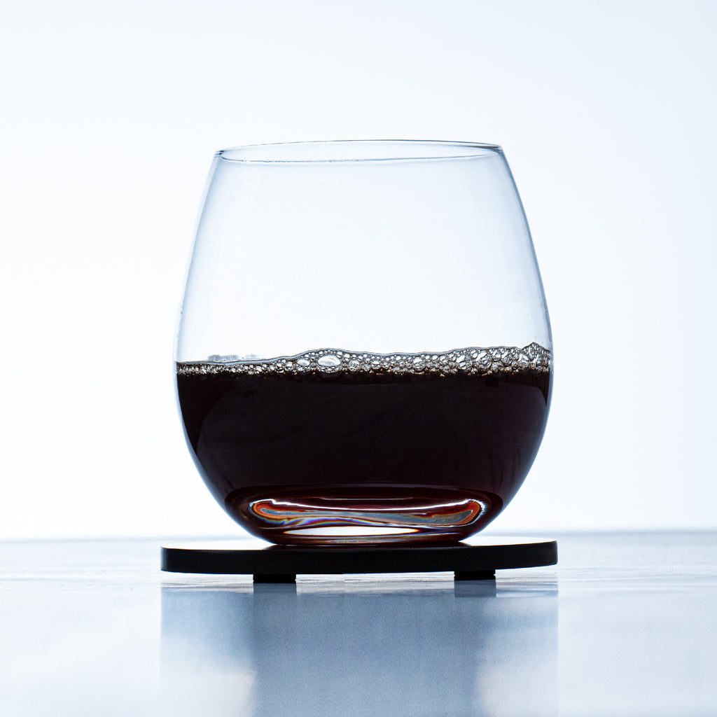 - Four stemless wine glasses with a contemporary silhouette, + 4 Coasters
