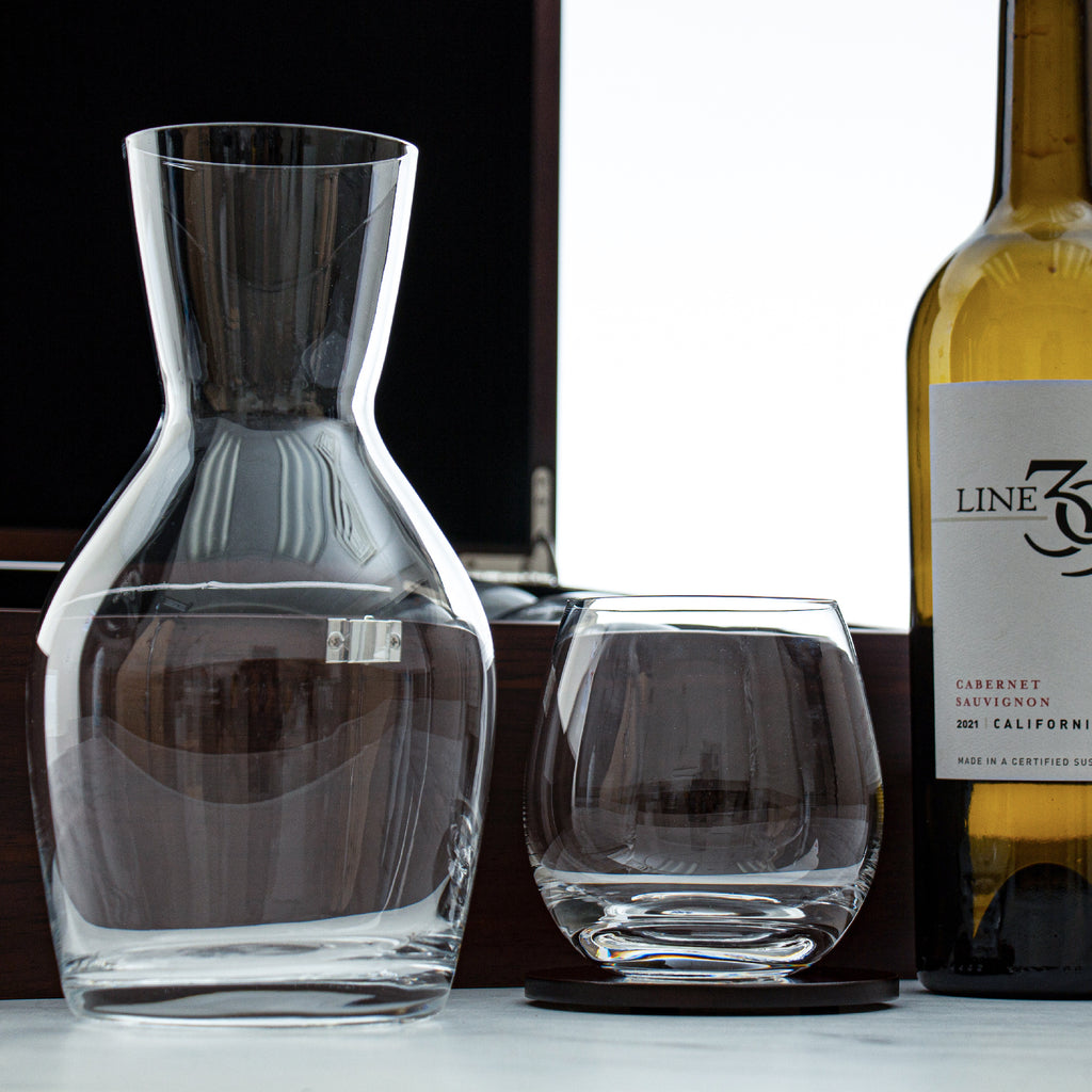 - Elegant glass decanter for optimal wine aeration