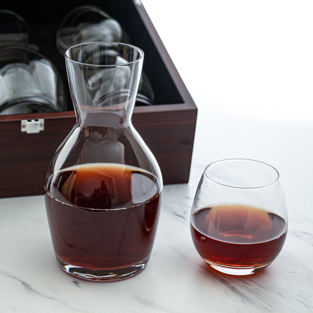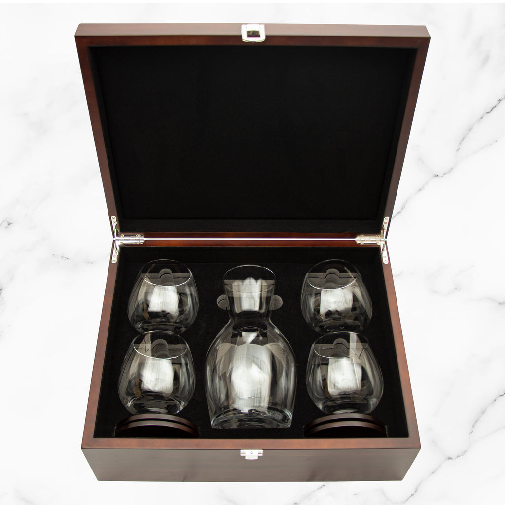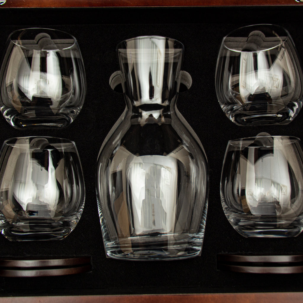 Wine Decanter Set with 4 Stemless Glasses & Premium Wood Gift Box