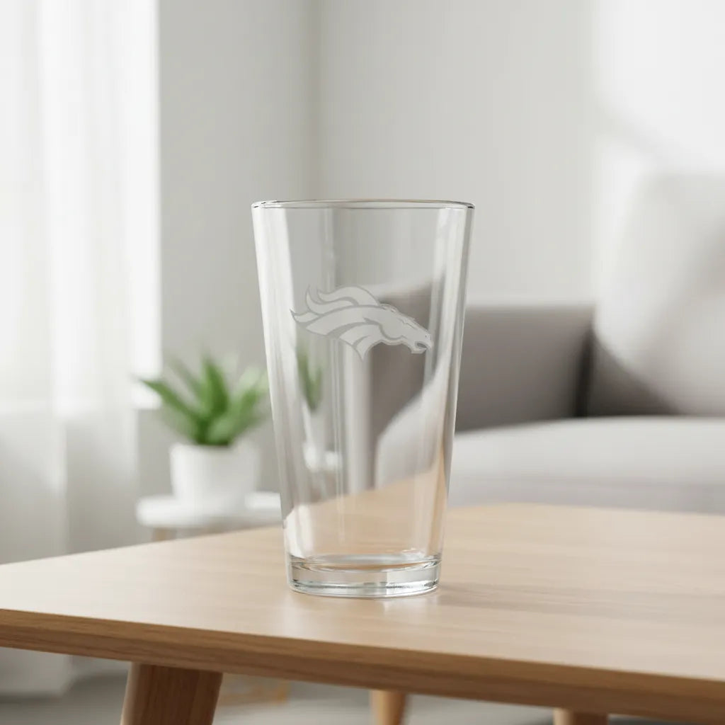 Denver Broncos Etch Pint Glass - Official NFL Merchandise