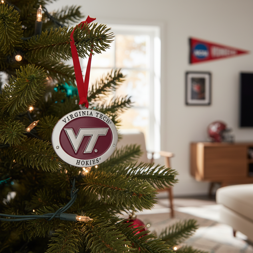 Each ornament arrives ready to hang with a luxurious maroon-and-orange double satin ribbon – the exact Chicago maroon and burnt orange that paint Blacksburg every game day – elegantly threaded and tied in a perfect bow. Hang it on your Christmas tree, let it ride from your rearview mirror down Route 460, dangle it from your backpack on the Drillfield, or display it year-round beside your turkey leg and “Let’s Go… Hokies!” memories.